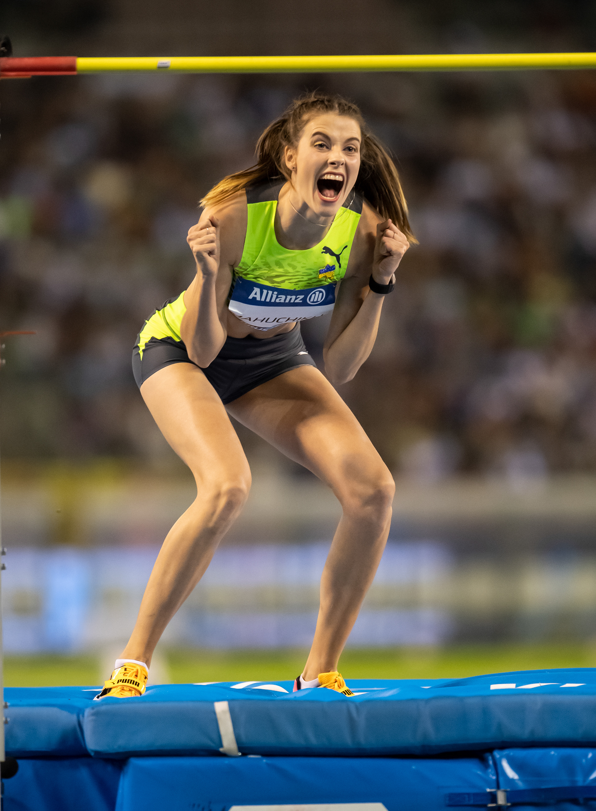 Yaroslava Oleksiivna Mahuchikh is a Ukrainian high jumper and women's high jump world record holder. She won the gold medal at the 2024 Summer Olympics and broke the world record at the 2024 Paris Diamond League with a jump of 2.10 m at the 2024 Paris Diamond League.